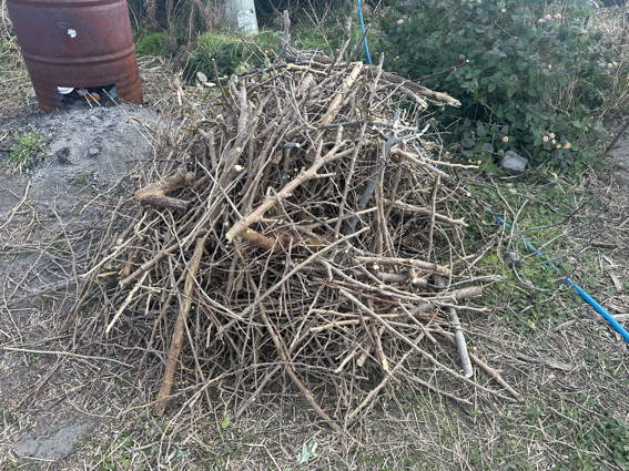 剪定した枝を全部焼却できるような長さに切りました