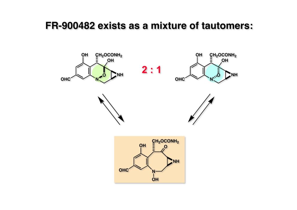 FR-900482のcongenerとして、FR-66979が同じく藤沢薬品から報告されている。両者はブリッジの開閉による平衡混合物として存在している。FR-900482の全合成に成功した時に測定した1H NMRはドヨーンとして、ガッカリするほど不鮮明であったが、トリアセチル体のNMRは鮮明であった記憶がある。