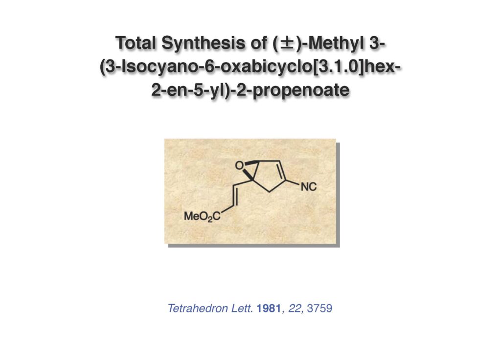 “Total Synthesis of dl -Methyl 3-(3-isocyano-6-oxabicyclo-[3.1.0]hex-2-en-5-yl)-2-Propenoate,” T. Fukuyama and Y. M. Yung, Tetrahedron Lett. , 22, 3759 (1981).